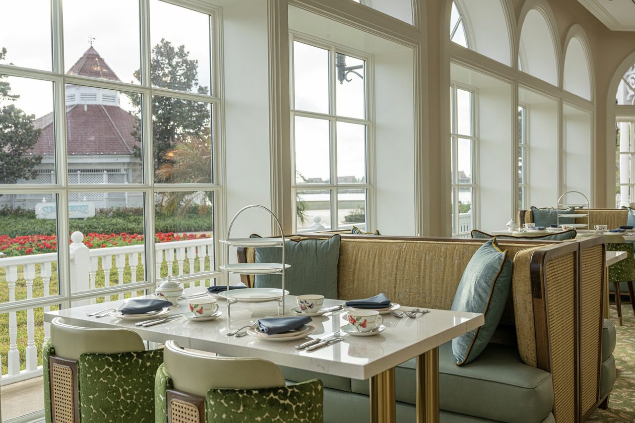 The Garden View Lounge — Tea Experience is in Disney’s Grand Floridian Resort & Spa’s main building. Large windows overlook the garden outside, with bright sunshine flowing through the intimate space. For years, the tea service has been a cherished tradition for Walt Disney World guests.