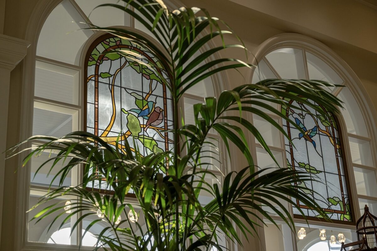 Just outside the tearoom, three new stained-glass features were added. These windows feature birds native to Florida, wrens and sparrows to be exact, that are incorporated in the design.