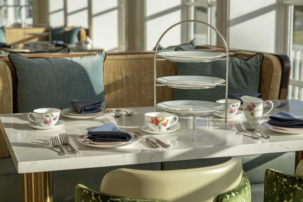 Guests can also sip on two signature tea-based cocktails. The Mint Tulip ($19.50) combines Old Forester 1870 Original Batch Kentucky Straight Whiskey with Twinings Refreshers Peach Mango Tea and mint. The Mar-TEA-ni ($18.50) uses Drumshanbo Gunpowder Irish Gin, Twinings Earl Grey Tea, lemon, and honey.