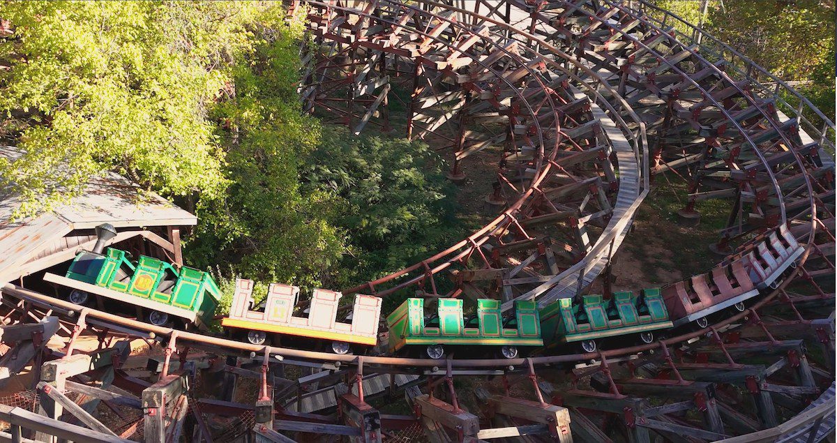 Silver Dollar City’s marketing communications for Thunderation’s closure include hints at what may be coming next. Within a fictional backstory, the park says a mining company is ordering the closure of Thunderation so it can reclaim the land, or something. All references to this mining company are assumed to be part of the lore of whatever attraction replaces Thunderation in the future, and should not be interpreted as the real reasons the coaster is closing.